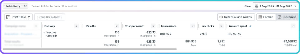 Même budget, 2,6× plus de leads, ROI beaucoup plus élevé.